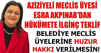 ESRA AKPINAR'DAN HÜKÜMETE İLGİNÇ TEKLİF "BELEDİYE MECLİS ÜYELERİNE HUZUR HAKKI VERİLMESİN!"