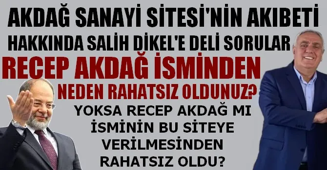 Vatandaşlarımız haklı olarak Akdağ Sanayi Sitesi Başkanı Salih Dikel'e bu soruyu soruyor ve kamuoyu huzurunda da bir cevap bekliyorlar.
