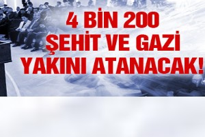 Aile ve Sosyal Politikalar Bakanlığı, 4 bin 200 şehit yakını, gazi ve gazi yakınları, vazife ve harp malulleri ile terör mağduru sivil vatandaşın atamasına ilişkin işlemleri tamamladı. 81 ilde başvuruların tek tek alındığı çalışma kapsamında hazırlanan evraklar Devlet Personel Başkanlığı`na teslim edildi. Atama müjdesini ise Başbakan Ahmet Davutoğlu`nun 17 Nisan`da katılacağı bir programda duyuracağı öğrenildi. Bakanlık, 24 Nisan`da yapılacak Çanakkale Zaferi`nin 100. yılı anma törenleri öncesi şehit yakını ve gazilere yönelik önemli bir atamayı hayata gerçekleştirmiş olacak.