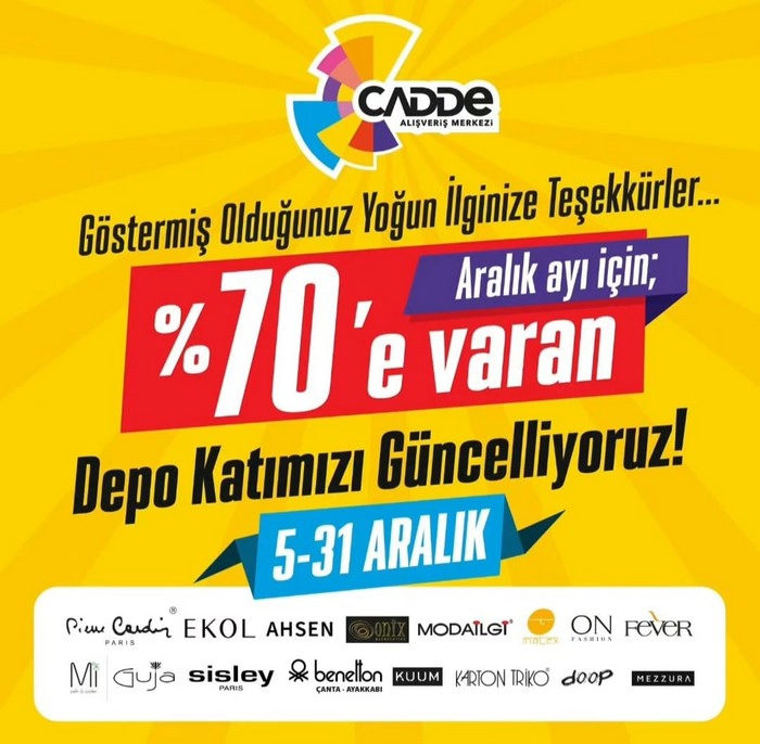 Türkiye’nin en saygın giyim markalarını tek bir çatı altında toplayarak müşterilerine geniş ürün yelpazesi sunan Erzurum'un tek Concept mağazası Cadde Alışveriş Merkezi'nde 10 Kasım ile 30 Kasım Tarihleri arasında başlatılan KASIM İNDİRİMLERİ yoğun istek üzerine 5 -31Aralık tarihlerinde yeniden başlattı.
