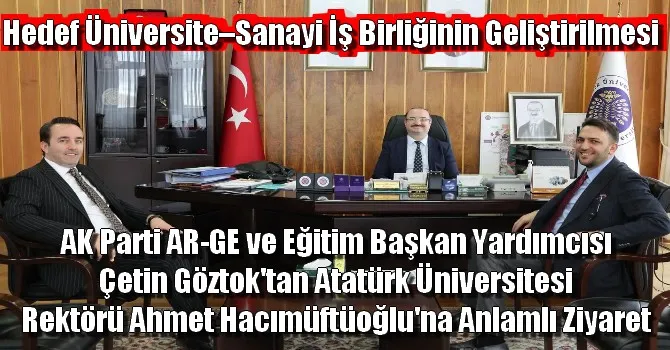 AK Parti Genel Merkez AR-GE ve Eğitim Başkan Yardımcısı Çetin Gözütok bugün Atatürk Üniversitesi Rektörü Prof. Dr. Ahmet Hacımüftüoğlu'nu makamında ziyaret etti.