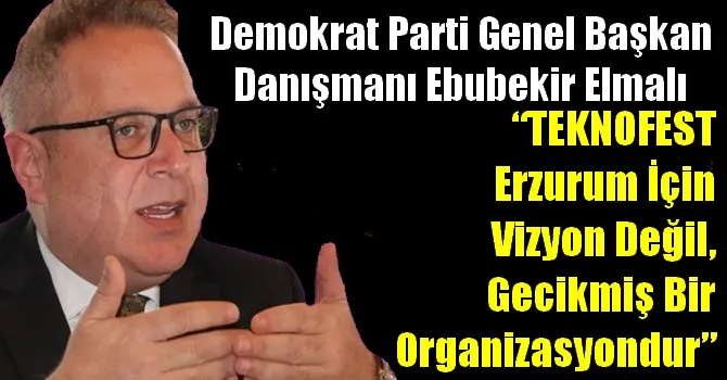 Demokrat Parti Genel Başkan Danışmanı Hukukçu Ebubekir Elmalı, TEKNOFEST’in olası Erzurum organizasyonu üzerine yaptığı değerlendirmede, festivalin şehir için “vizyon projesi” olarak sunulmasını eleştirdi. Elmalı, organizasyonun Erzurum açısından yeni bir vizyon değil, gecikmiş bir hak niteliği taşıdığını ifade etti.