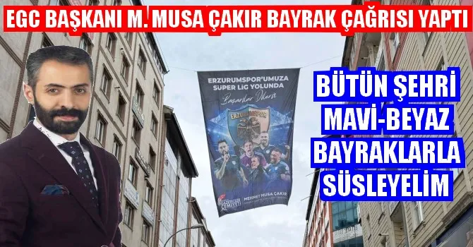 EGC Başkanı Mehmet Musa Çakır, ligin bitimine 11 hafta kala Erzurumspor’un şampiyonluğun en güçlü adayı konumunda olduğunu belirterek, kentte beklenen coşkunun henüz oluşmadığına dikkat çekti. Çakır, “Takımımız önemli bir başarıya doğru ilerliyor. Ancak şehirde bu heyecanı yeterince göremiyoruz. Erzurumspor bu kentin ortak değeridir. Şehrin dört bir yanında bayraklarla bu birlikteliği göstermeliyiz” ifadelerini kullandı.