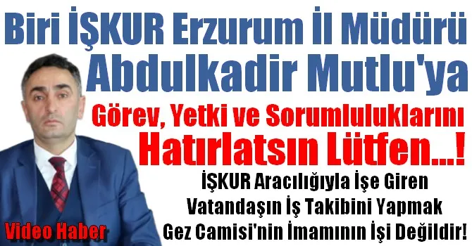 Biri İŞKUR Erzurum İl Müdürü Abdulkadir Mutlu'ya Görev, Yetki ve Sorumluluklarını Öğretsin Lütfen...!