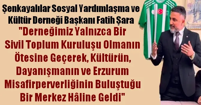 “Erzurum, güçlü hemşehri dayanışmasının yaşandığı çok özel bir şehir. Bugün gelinen noktada kardeş dernek Horasanlılar Derneği ile birlikte Şenkayalılar Derneği, Erzurum’un en popüler ve en çok ziyaret edilen iki hemşehri derneği hâline gelmiştir. Bu tablo bizler için büyük bir gurur kaynağıdır.Kardeş derneğimiz olan Horasan derneği Başkanı Abuzer ÇOLAK başkan ve ekibinide tebrik ediyoruz.Göreve geldiğimiz ilk günden itibaren yönetim kurulumuz ve üyelerimizle birlikte ortak akılla hareket ettik, Erzurum’daki Şenkayalı hemşehrilerimizi aynı çatı altında buluşturduk.”