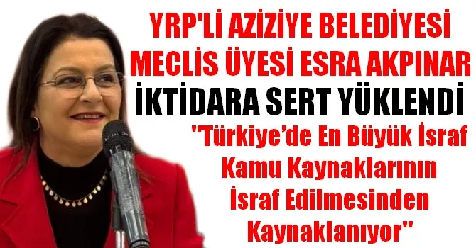 Türkiye’de en büyük israfın kamu kaynaklarının israf edilmesinden kaynaklandığını aktaran YRP'li Aziziye Meclis Üyesi Esra Akpınar, devletin israfın önüne geçmesi gerektiğini söyledi.