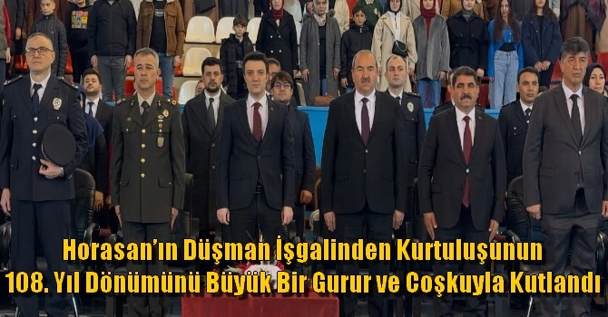 Horasan'ın ilçesinin düşman işgalinden kurtuluşunun 108. yıl dönümü düzenlenen törenle kutlandı.
