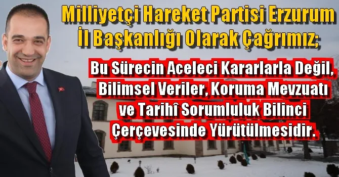 Son günlerde Erzurum Kongre Binası’nın depreme dayanıklılığı gerekçe gösterilerek yıkılmasına yönelik gündeme gelen değerlendirmeler üzerine Milliyetçi Hareket Partisi Erzurum İl Başkanlığı tarafından açıklama yapıldı.