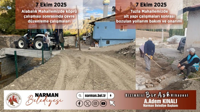 Daha düzenli ve yaşanabilir bir Narman için ekiplerimizle sahadayız. Parke döşemeden çevre düzenlemesine, yol iyileştirmelerinden sosyal hizmetlere ve yeni hizmet alanlarının oluşturulmasına kadar ilçemizin her köşesinde çalışmalarımızı sürdürüyoruz.