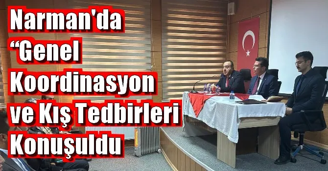 Narman'da İlçe Kaymakamı Erkan Adıbelli, Narman Belediye Başkanı Aydemir Adem Kınalı, ilgili kurum amirleri ve mahalle muhtarlarımızın katılımıyla “Genel Koordinasyon ve Kış Tedbirleri Toplantısı” gerçekleştirildi.