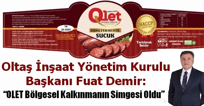 Bölgedeki hayvancılığı geliştirmek ve Erzurum’un yöresel lezzeti olan Cağ Kebabını markalaştırmak amacıyla yola çıktıklarını belirten Demir, 2020 yılında Oltu Organize Sanayi Bölgesi’nde temeli atılan fabrikanın 2022 yılında tamamlanarak OLET markasıyla üretime geçtiğini hatırlattı.