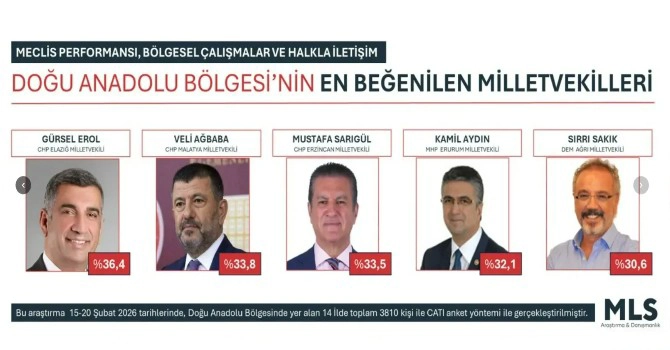 MLS Araştırma Şirketi Doğu Anadolu Bölgesi'nin en beğenilen milletvekillerini açıkladı.