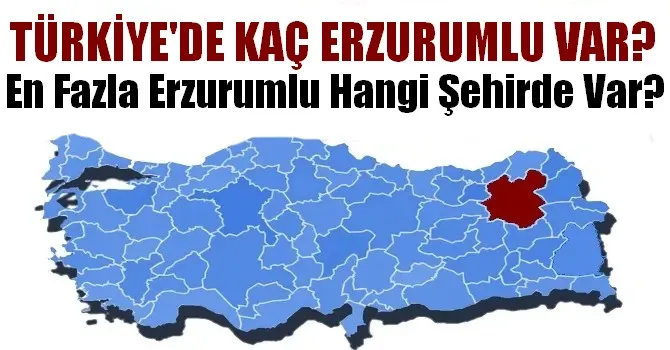 Erzurum dışındaki illerde yaşayan Erzurum doğumluların dağılımına göre, en fazla sayıda Erzurumlunun sırayla; İstanbul, Bursa, İzmir, Ankara, Kocaeli, Tekirdağ, Manisa, Sakarya ve Yalova’da ikamet ettiği açıklandı.